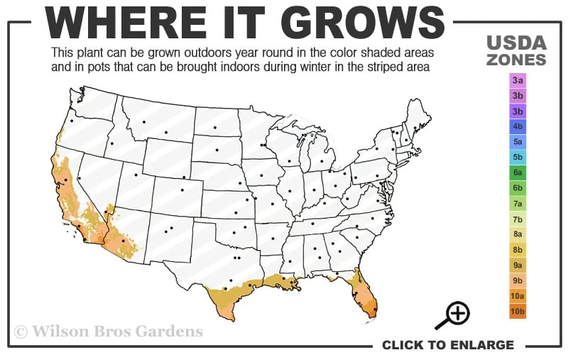 USDA Plant Hardiness Zones: 9a-11b  Find Your Zone